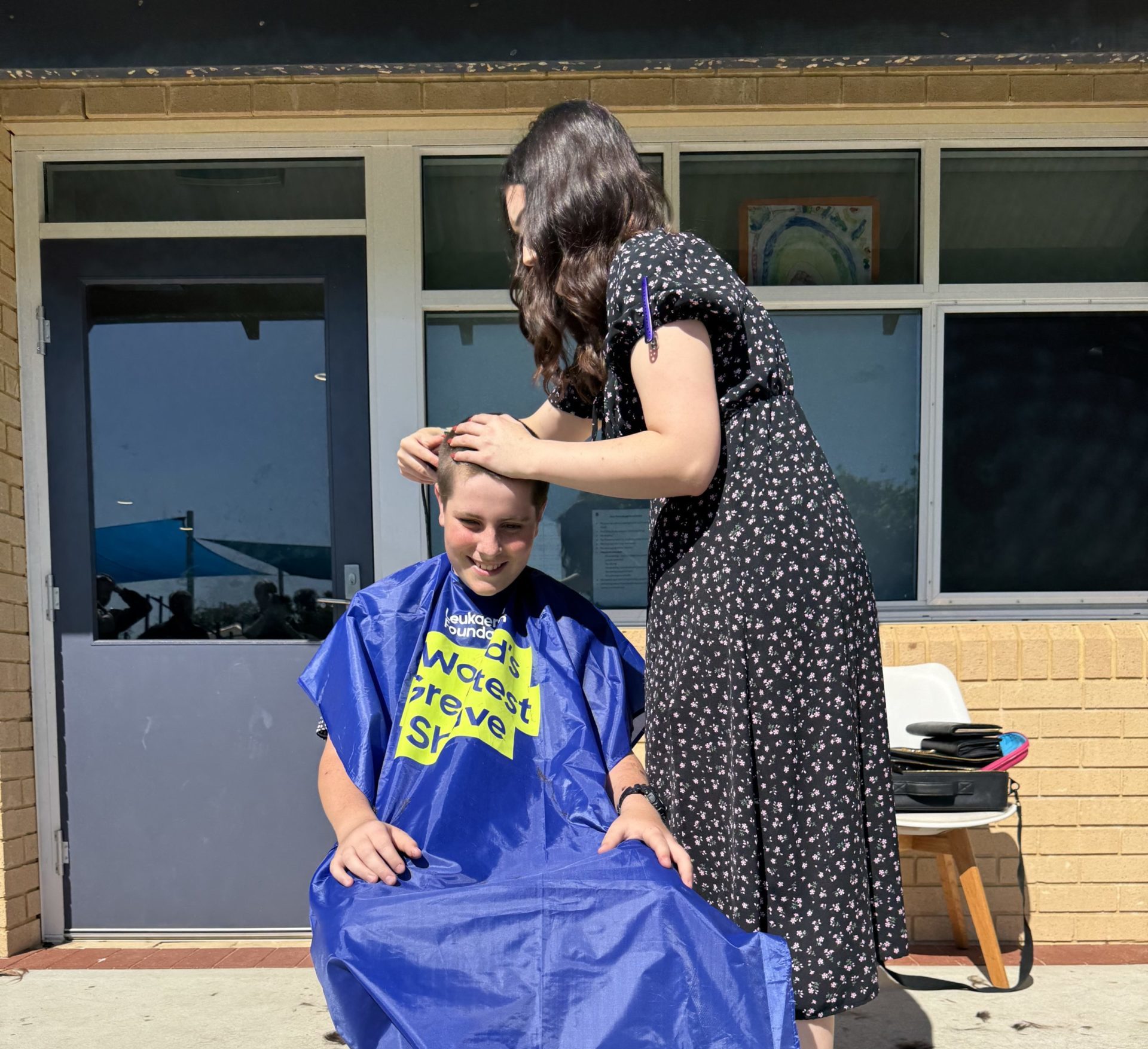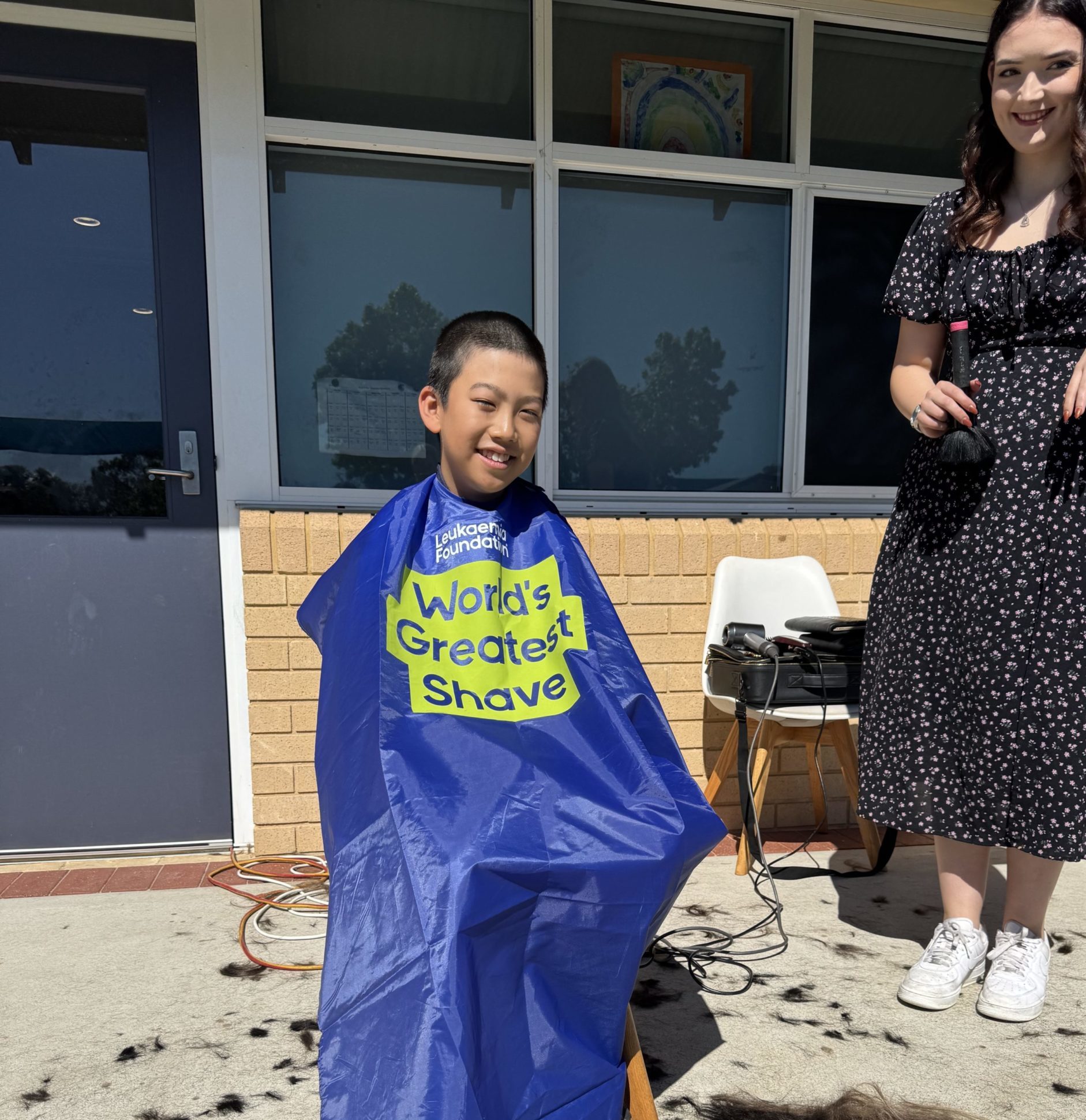 On Friday, 7 November, the school grounds were filled with cheers, laughter, and a few nervous smiles as 20 Year 6 students took the courageous step to either shave their heads (for boys) or cut off some of their hair (for girls) to support those living with blood cancer. Joining them were seven dedicated staff members who dyed or cut their hair in solidarity.